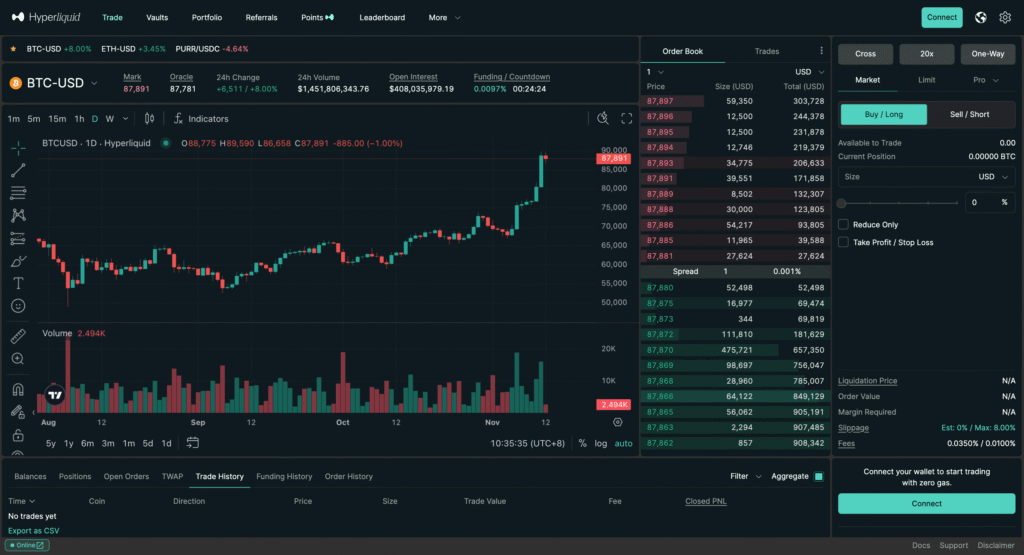 在Hyperliquid,我们致力于提供高效的交易体验,确保快速执行和精准报价。